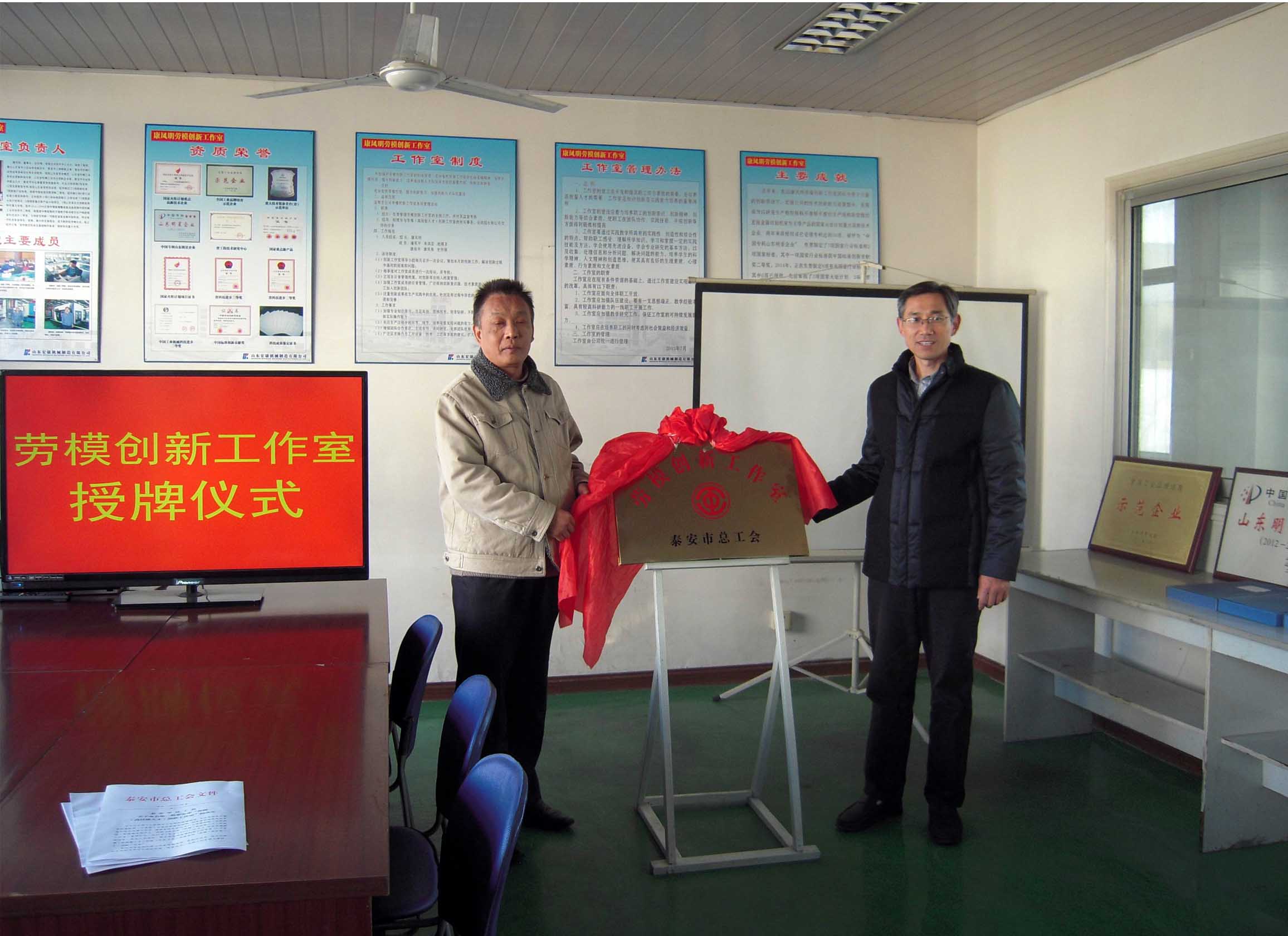 根据泰会(2014)50号《泰安市总工会关于命名第二批泰安市“劳模(高技能人才)创新工作室”的决定》文件精神,“康凤明劳模创新工作室”被命名为第二批泰安市“劳模创新工作室”,这是继今年5月份“康凤明劳模创新工作室”被岱岳区总工会首批命名后取得的又一殊荣。12月5日,市总工会生产保护部部长刘军、岱岳区总工会常务副主席李福江等市区部门领导来集团公司举行了揭牌、授牌、挂牌仪式。副总经理、工会主席聂化涛等领导参加了活动仪式。